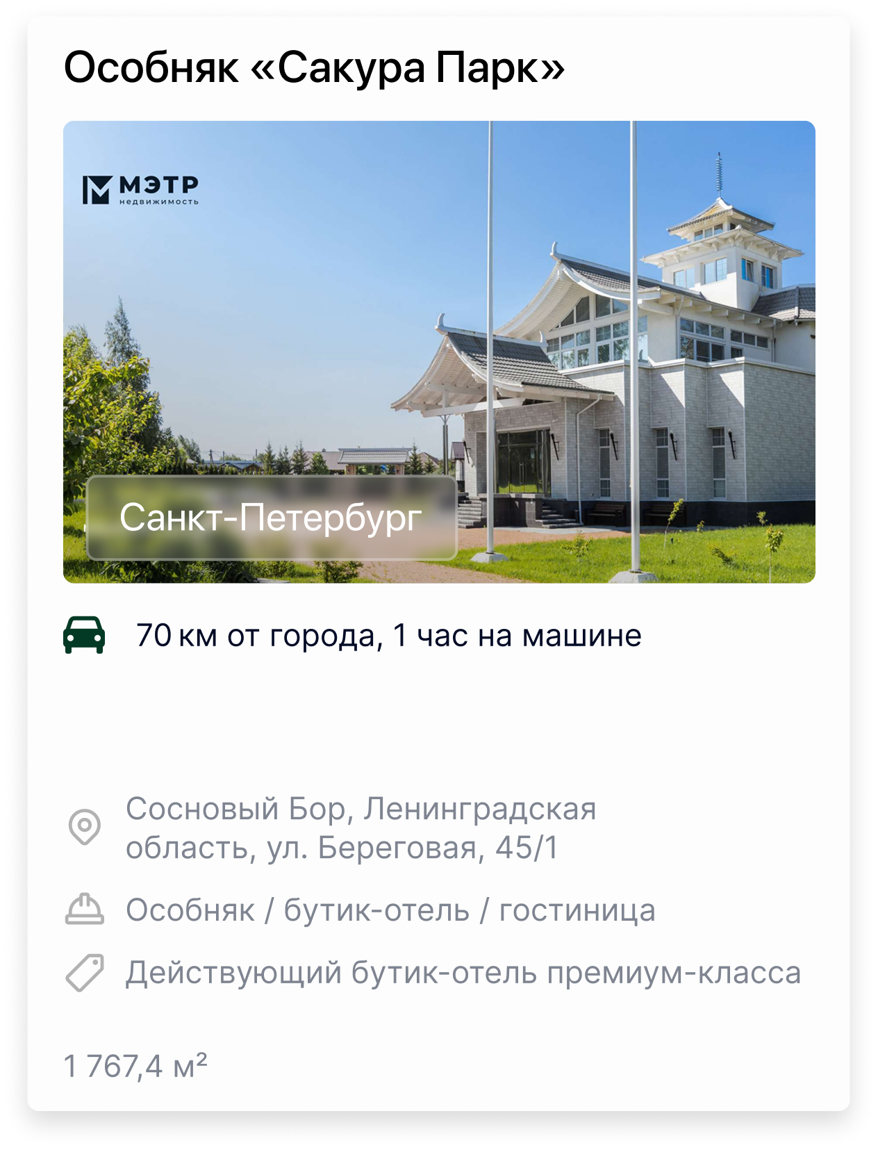 Сакура Парк идеально подходит как для открытия бутик-отеля, проведения мероприятий высокого уровня, так и для совмещения деловой и личной жилой функции. Архитектура в восточном стиле подчёркивает статус объекта, а интерьер создаёт атмосферу уединённости и комфорта, сравнимую с гостиницами высокого класса.