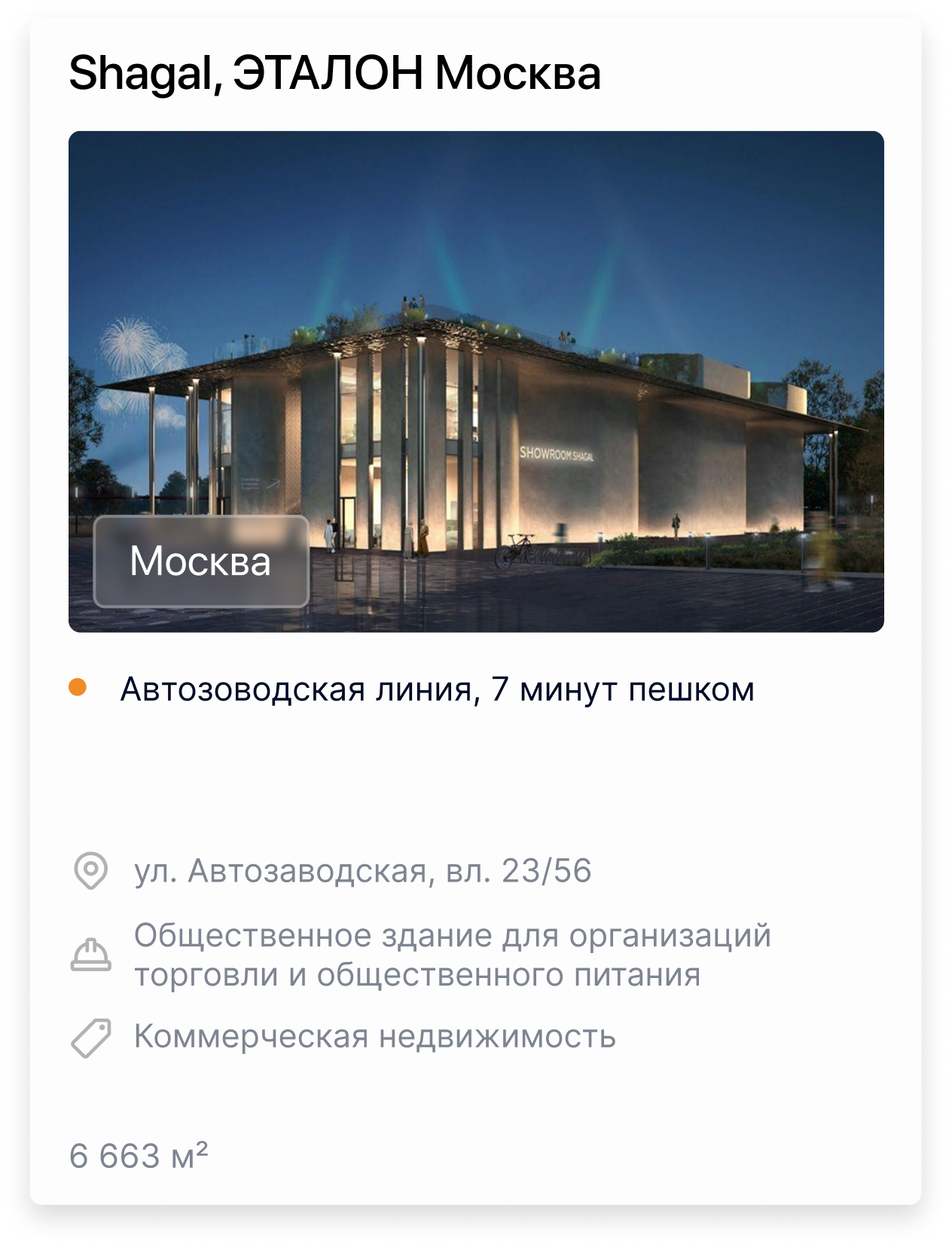 Объект отличается отличной коммерческой локацией: в шаговой доступности находятся метро (3 минуты пешком), крупные жилые массивы и бизнес-центры. Средняя дневная проходимость составляет около 15 000 человек, автомобильный трафик — 13 000 авто/сутки. В радиусе 500 метров сосредоточено более 2 300 организаций и фирм, а плотность населения обеспечивает постоянный поток потенциальных клиентов.
